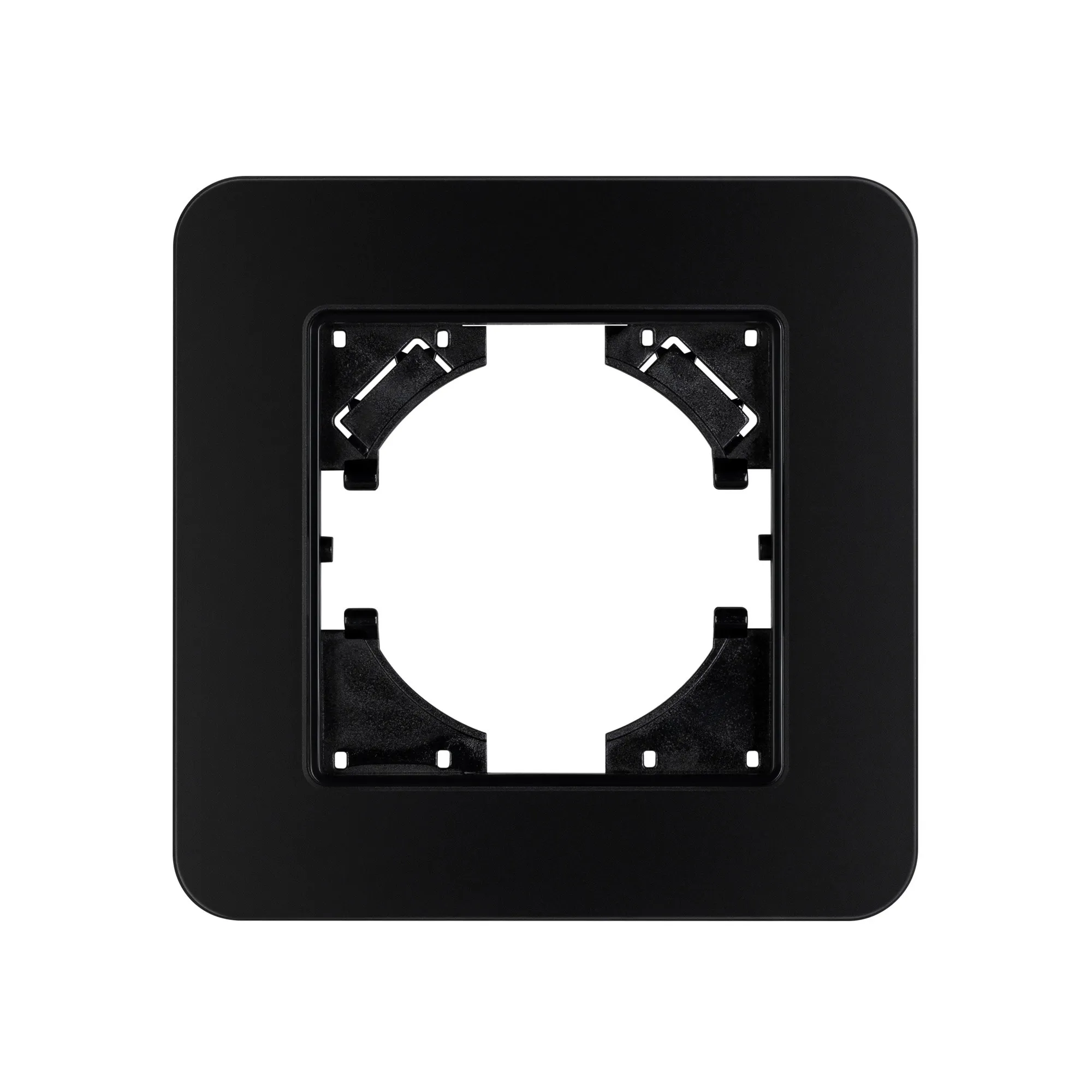 Рамка стеклянная на 1 пост, под встраиваемый механизм. Цвет - черный. Среднего уровня герметичности IP20. Ориентация монтажа - горизонтальная (основным ориентиром служат посадочные выступы для накладки механизма).