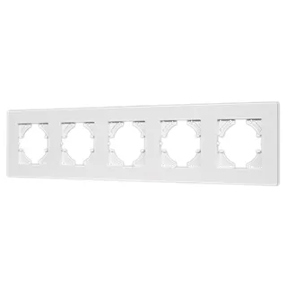 Рамка пластиковая на 5 постов, под встраиваемый механизм. Цвет - белый. Среднего уровня герметичности IP20. Ориентация монтажа - горизонтальная (основным ориентиром служат посадочные выступы для накладки механизма).