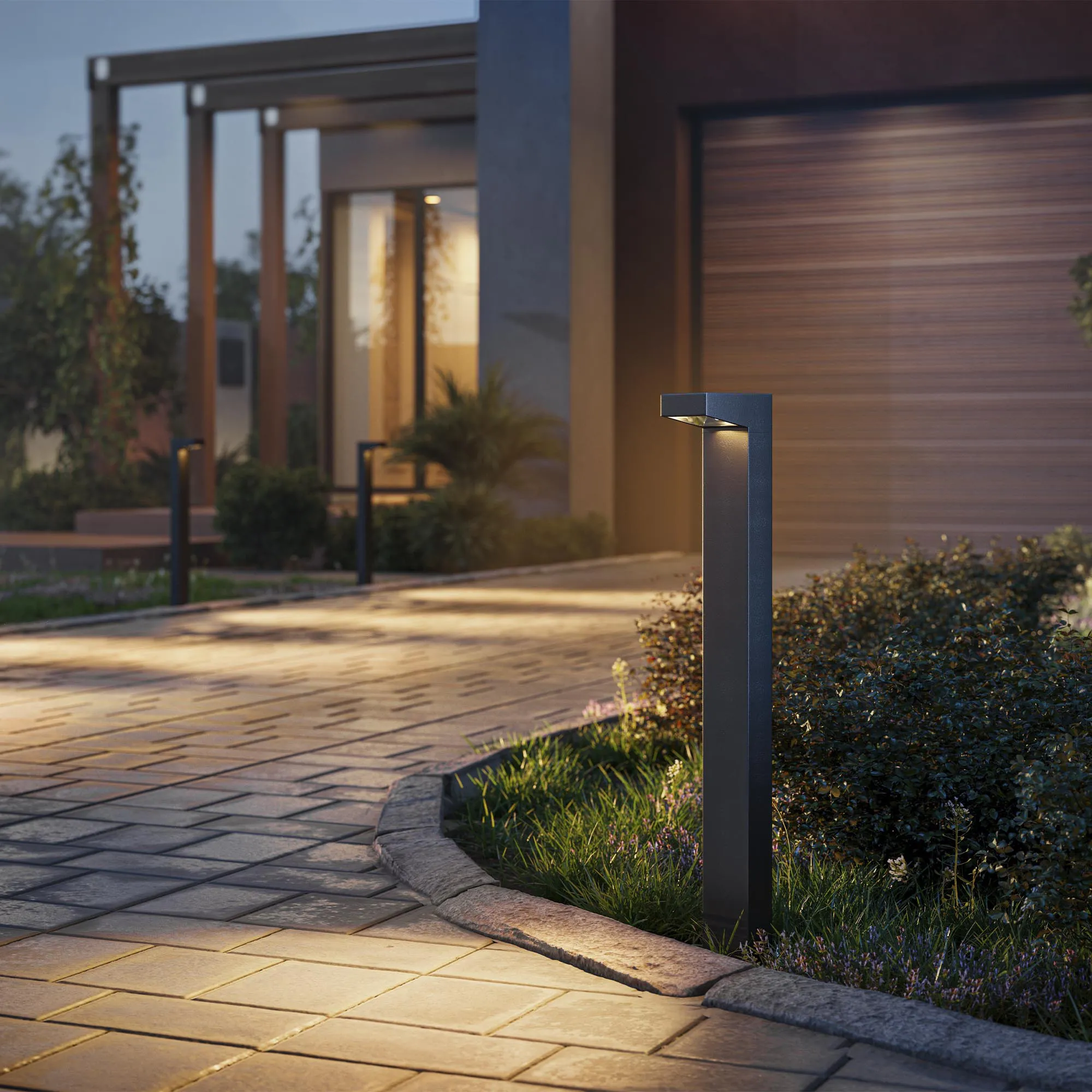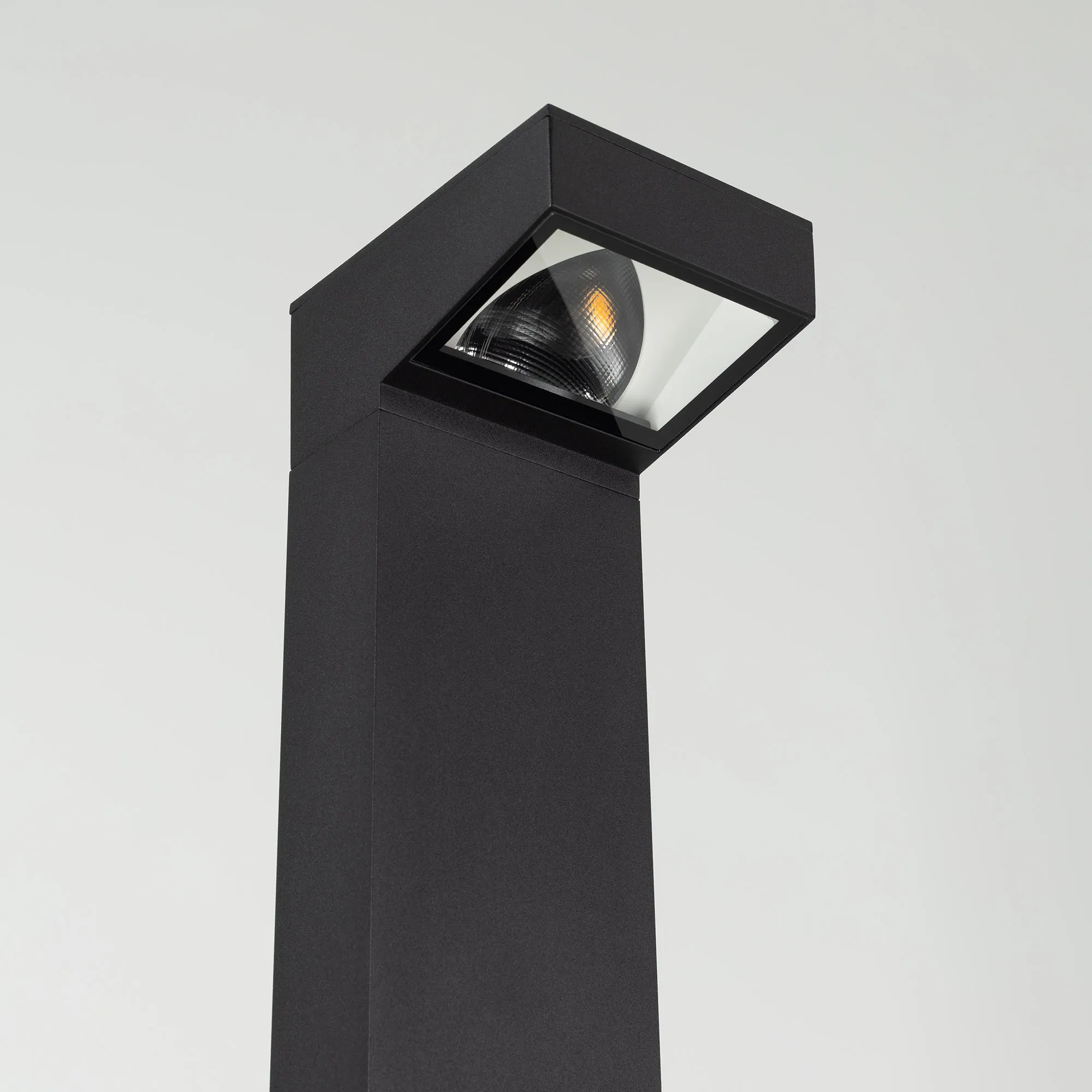 Уличный светодиодный светильник для освещения дорожек. Мощность 12 Вт. Цвет теплый 3000К, световой поток 888 лм, угол 93°. Влагозащищенный корпус IP65 - черный алюминий, экран из поликарбоната. Питание 230 В, мощность 12 Вт. Размеры светильника ДхШхВ: 150х130х900 мм. Монтаж накладной, комплект крепежа поставляется со светильником.