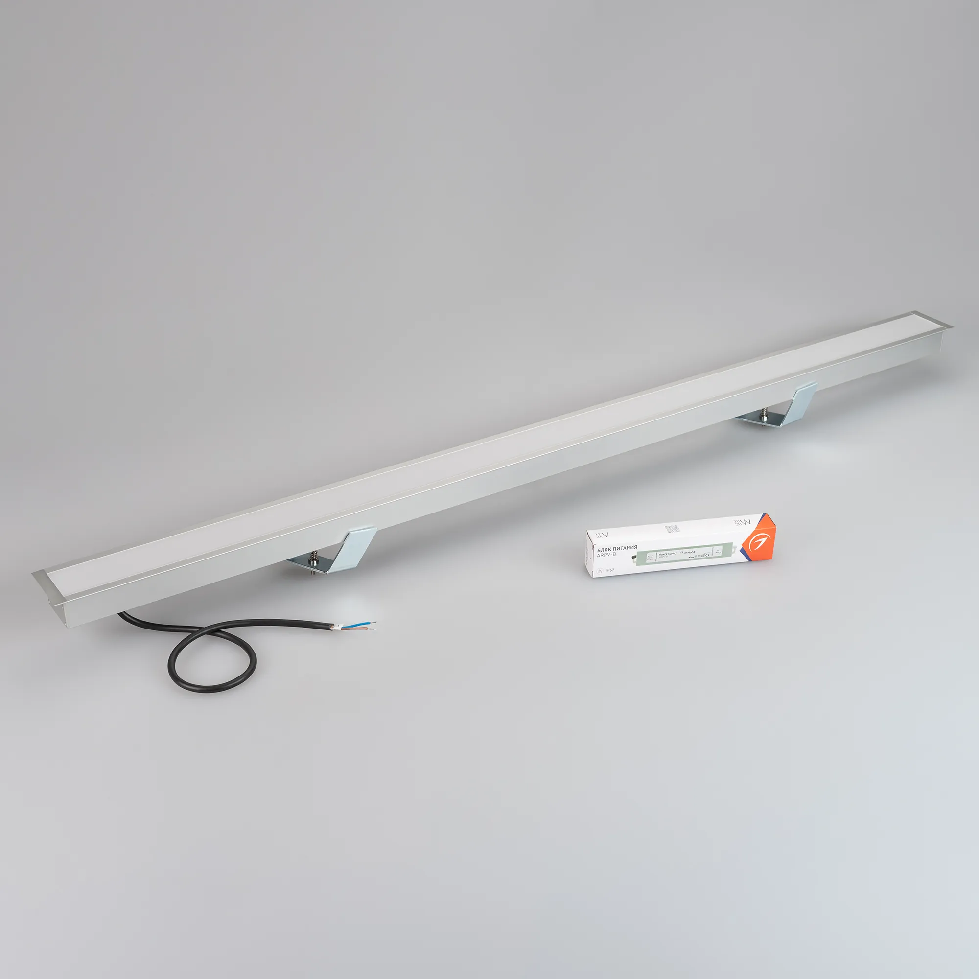 Светильник ЛИНИЯ из профиля SL-LINIA62-F ANOD с накладным фланцем, цвет Day4000K, световой поток - 1070 лм. Габаритный размер светильника (ДхШхВ): 978х62х32 мм (с учетом фланца). Посадочный размер светильника (ДхШхВ): 960х49х32 мм (высота указана без учета держателей). Способ установки - встраиваемый. Цвет корпуса - серебристый. Степень защиты IP33. Мощность 22 Вт, питание 200-240 В. В комплекте 1 внешний блок питания и держатели. Гарантия 3 года. Поставка в сборке.
