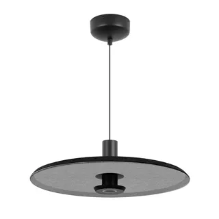 Подвесной светильник. Мощность 12 Вт, св. поток 708 лм, 59 лм/Вт, теплый 3000 K, CRI>94, угол 36°, напряжение питания 230 В. Темно-серый фигурный корпус из переработанного фетра с светло-серой внутренней поверхностью, линза-рассеиватель из PMMA, степень защиты IP20. Размер: диаметр 350 мм, высота 145 мм. Монтаж подвесной, длина подвеса 2000 мм, регулируемая. В комплекте 2 вида чаш. Габариты чаши (встраиваемая) Ø80 х 23 мм, врезное отверстие Ø60 мм. Габариты чаши (накладная) Ø120 x 35 мм. Драйвер 59 В, 300 мА, пульсация <1%. Управление по TRIAC.