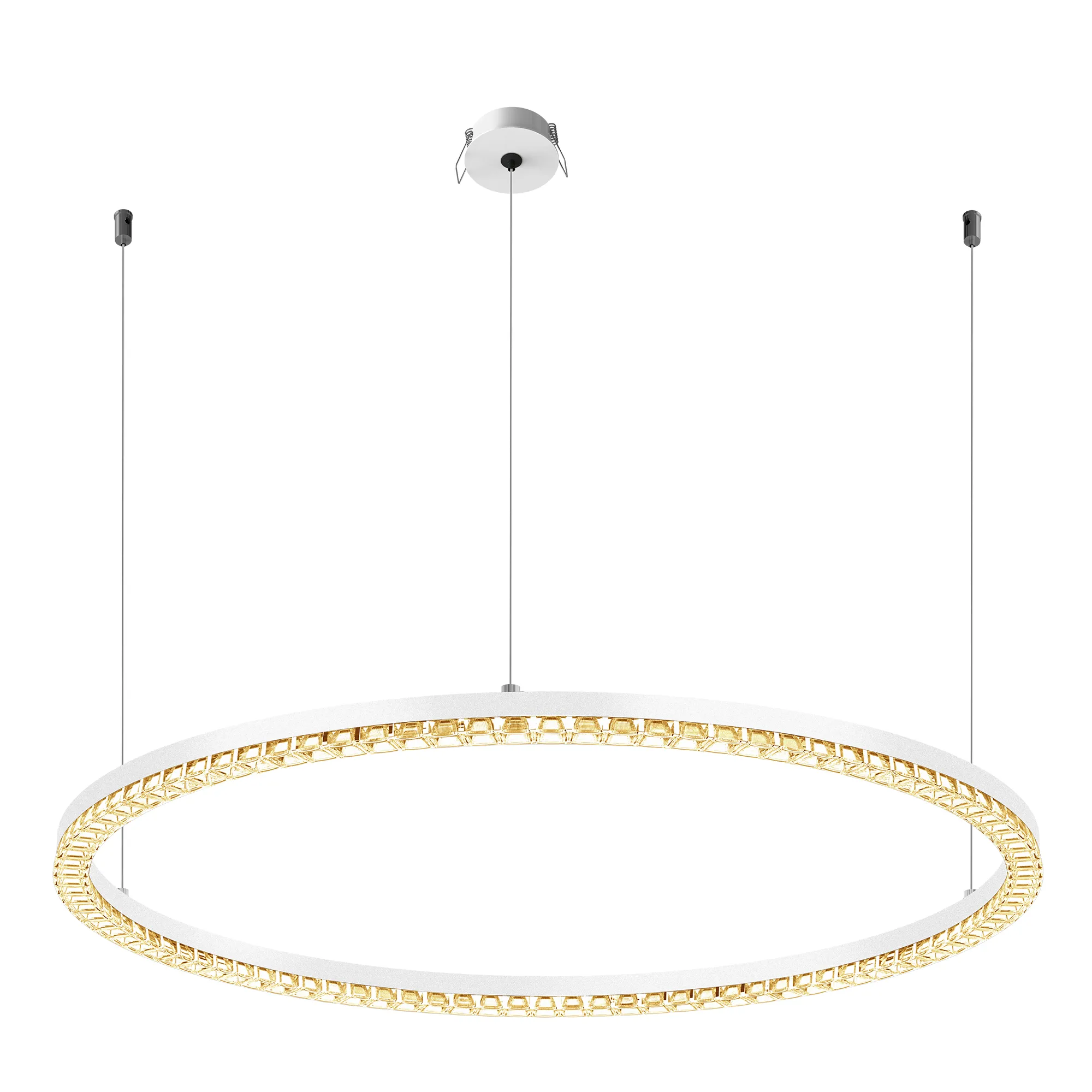 Под заказ. Подвесной светильник. Мощность 40 Вт, св. поток 3460 лм, 80-95 лм/Вт, дневной белый 4000 K, CRI>90, угол 45°, напряжение питания 230 В. Белый круглый корпус из алюминия, экран PMMA, степень защиты IP20. Размер: диаметр 850 мм, высота 34мм, ширина профиля 30 мм, размер чаши: диаметр 65 мм, высота 26 мм. Монтаж подвесной, длина подвеса 1200 мм, тип чаши встраиваемый, диаметр установочного отверстия чаши 60 мм. Драйвер 27-38 В, 1050 мА. Пульсация <0.3 %.