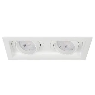 Встраиваемый карданный светильник. Мощность 2х12 Вт, св. поток 2636 лм, 109 лм/Вт, дневной 4000 K, CRI>92, угол 20°, напряжение питания 230 В. Белый корпус из алюминия, белая вставка, степень защиты IP20. Размер: длина 170 мм, ширина 90 мм, высота 80 мм. Монтаж встраиваемый, установочное отверстие: длина 155 мм, ширина 75 мм. Драйвер 27-40 В, 300 мА, пульсация <2%.