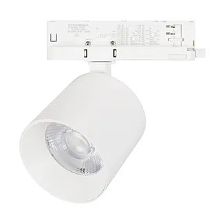 Светильник для трехфазных треков, 36 Вт с управлением DALI. Цвет свечения ДНЕВНОЙ 4000K, световой поток 3200 лм, угол 50°, CRI>90. Корпус круглый, металл, цвет белый, IP20. Размеры Ø100x93 мм. Входное напряжение AC220-240V. Драйвер встроенный 10-40В (850-1050 мА), 50/60Гц, максимальная мощность 42W.