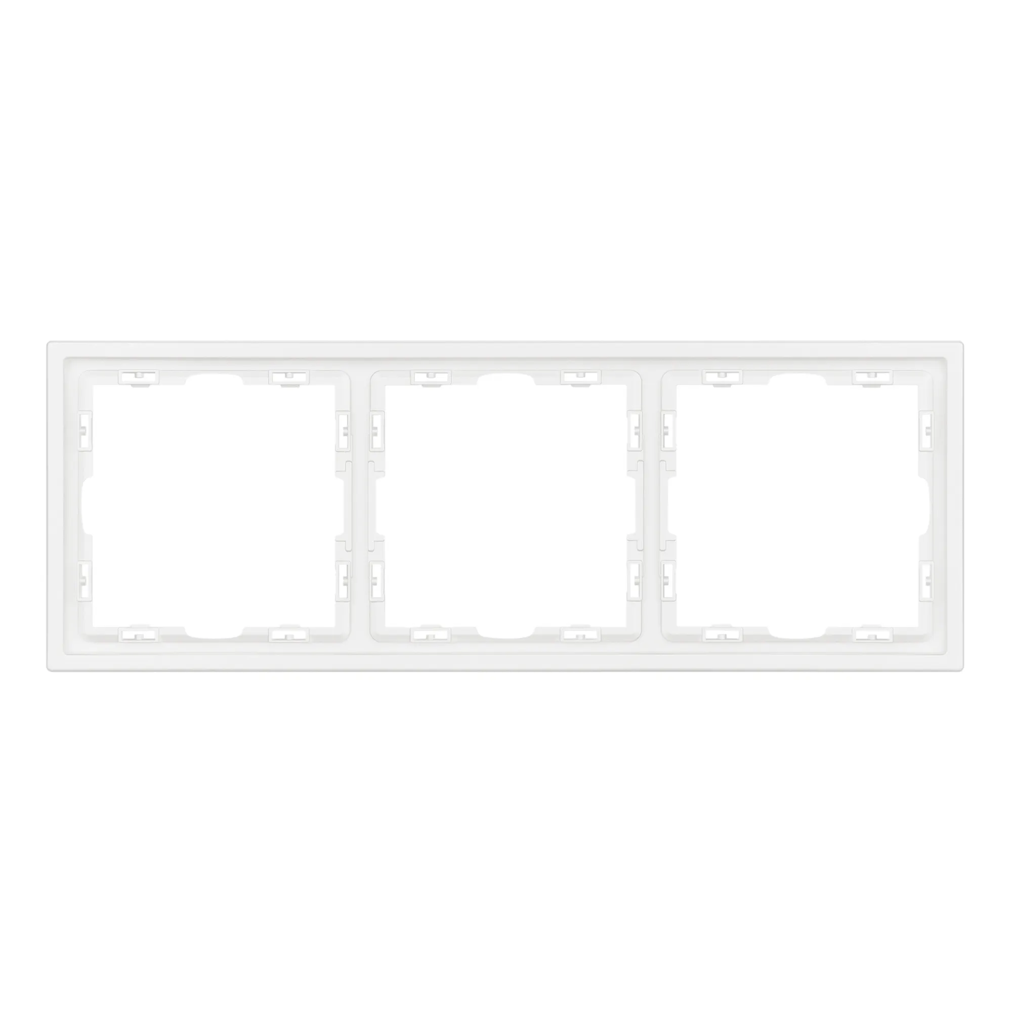 Рамка пластиковая на 3 поста, под встраиваемый механизм. Цвет - белый, с Soft-Touch покрытием. Среднего уровня герметичности IP20. Ориентация монтажа горизонтальная.