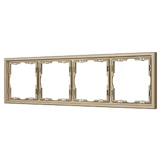 Рамка пластиковая на 4 поста, под встраиваемый механизм. Цвет - золотой, с Soft-Touch покрытием. Среднего уровня герметичности IP20. Ориентация монтажа горизонтальная.
