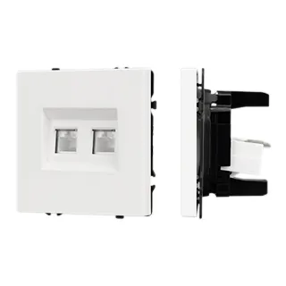 Механизм компьютерной розетки на 2 поста 6-й категории. Цвет - белый, с Soft-Touch покрытием. Без фронтальной рамки. Уровень пылевлагозащиты IP20. Тип подключаемого разъема - RJ45. Розетка устанавливается в стандартный подрозетник круглого сечения диаметром 60мм.