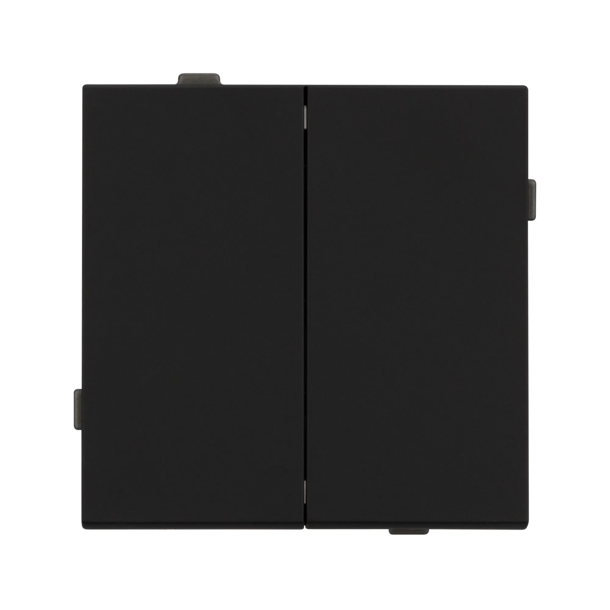 Механизм выключателя света клавишный на 1 пост 2 клавиши (непроходной). Цвет - черный, с Soft-Touch покрытием. Без фронтальной рамки. Уровень пылевлагозащиты IP20. Выключатель устанавливается в стандартный круглый подрозетник круглого сечения диаметром 60мм.