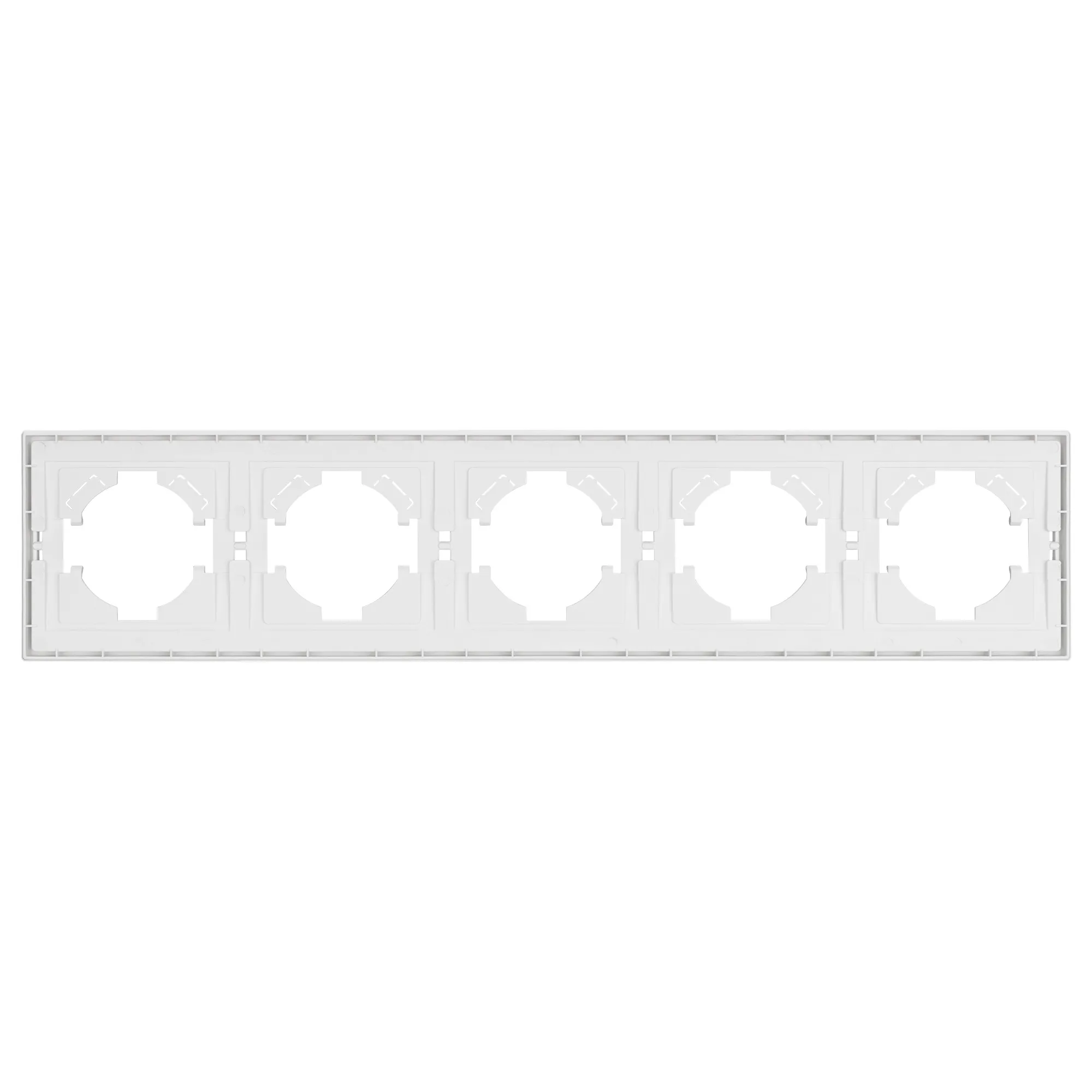 Рамка пластиковая на 5 постов, под встраиваемый механизм. Цвет - белый. Среднего уровня герметичности IP20. Ориентация монтажа горизонтальная.