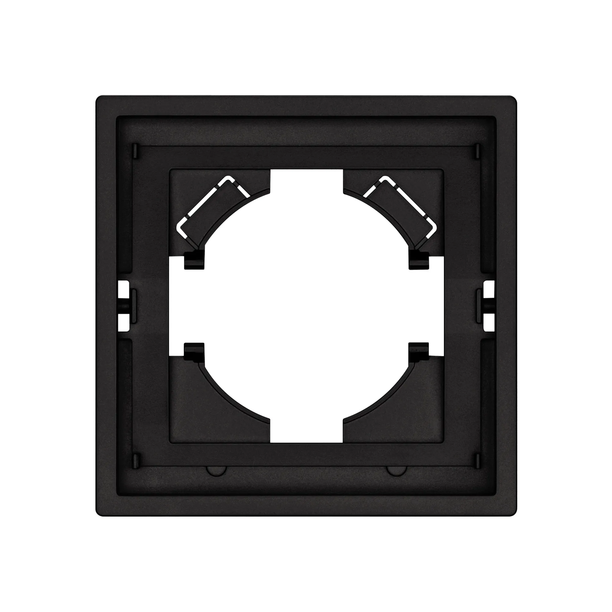 Рамка пластиковая на 1 пост, под встраиваемый механизм. Цвет - черный, с Soft-Touch покрытием. Среднего уровня герметичности IP20. Ориентация монтажа горизонтальная.