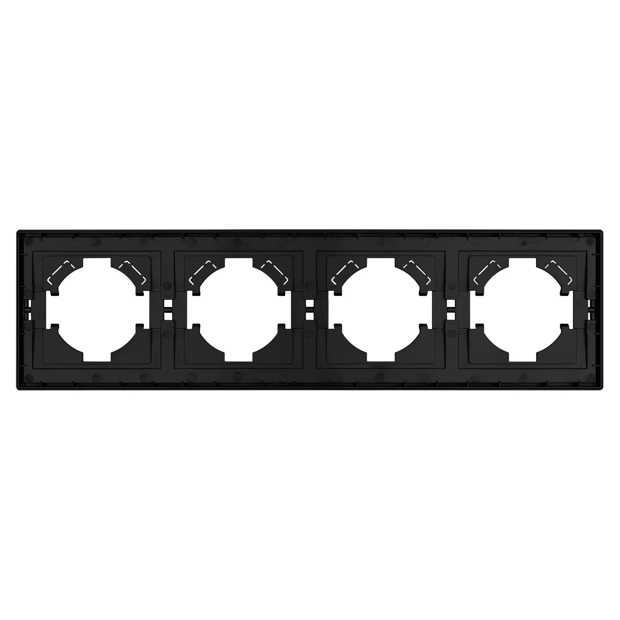 Рамка пластиковая на 4 поста, под встраиваемый механизм. Цвет - серый, с Soft-Touch покрытием. Среднего уровня герметичности IP20. Ориентация монтажа горизонтальная.