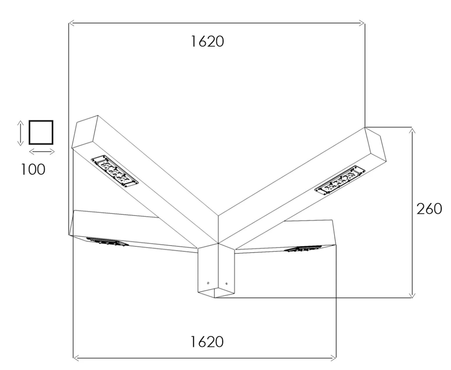 USYA-3-03-120 L1620 B1620 H390 120 W 33276 lm 28200 lm 235 lm/w 1,0235м³ 66,3 48