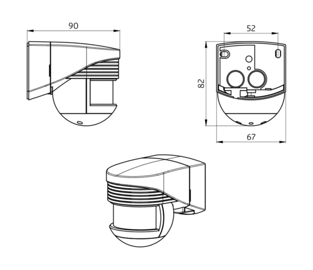 Зона обнаружения: горизонтальный 200° (настенный монтаж)