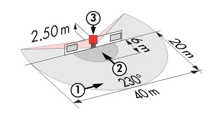 • Дальность действия перпендикулярно ∅ 20 м.