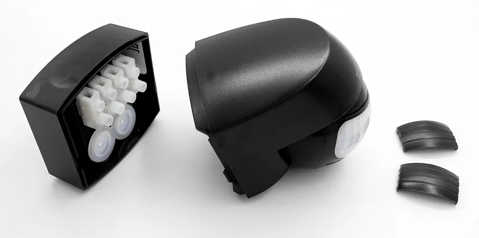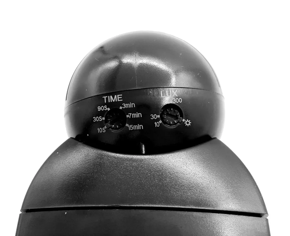 - Регулировка диапазона обнаружения и дальности действия с помощью поворачивающейся и наклоняемой сферической головки
