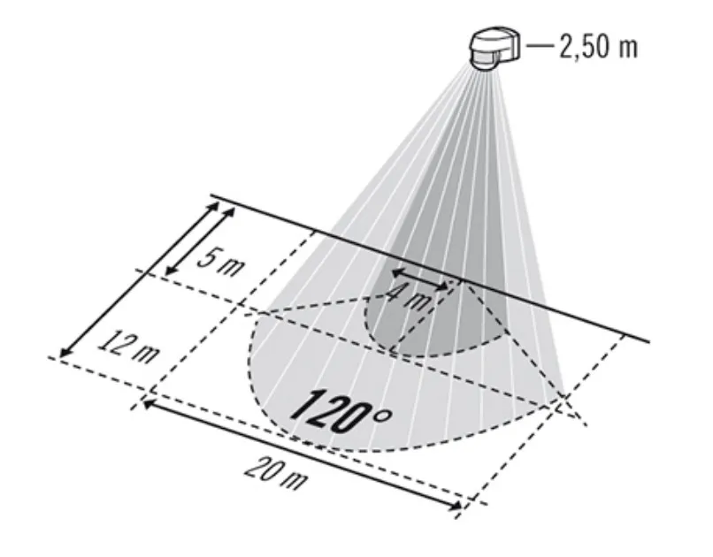 - Датчик движения с углом охвата 120° для удобного включения освещения