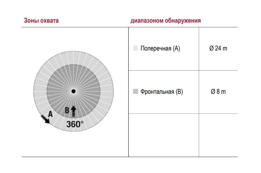 | диапазоном обнаружения Фронтально | Ø 8 м |