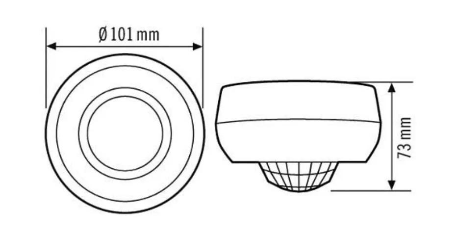 - Датчик движения с углом охвата 360° для потолочного монтажа