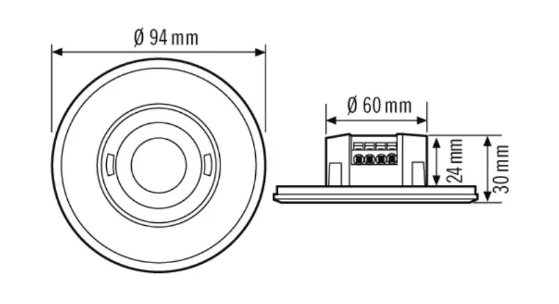 Монтажные размеры Глубина монтажа: 24 мм, Ø 60 мм