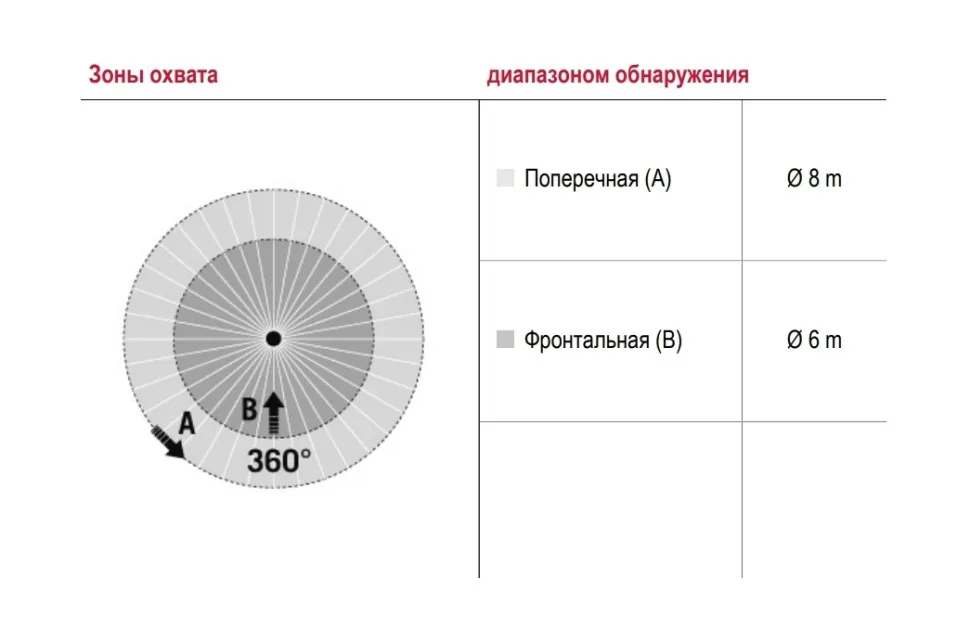 | диапазоном обнаружения Фронтально | Ø 6 м |