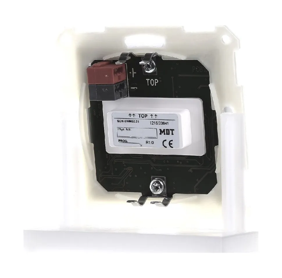 Детектор движения / автоматический переключатель MDT с датчиком освещенности обнаруживает малейшие движения с помощью 2 пиродетекторов и линзы высокого разрешения. Можно настроить 2 отдельных канала освещения, один канал HVAC и один канал для мониторинга помещения. Яркость комнаты измеряется встроенным датчиком освещенности и становится доступной как объект.