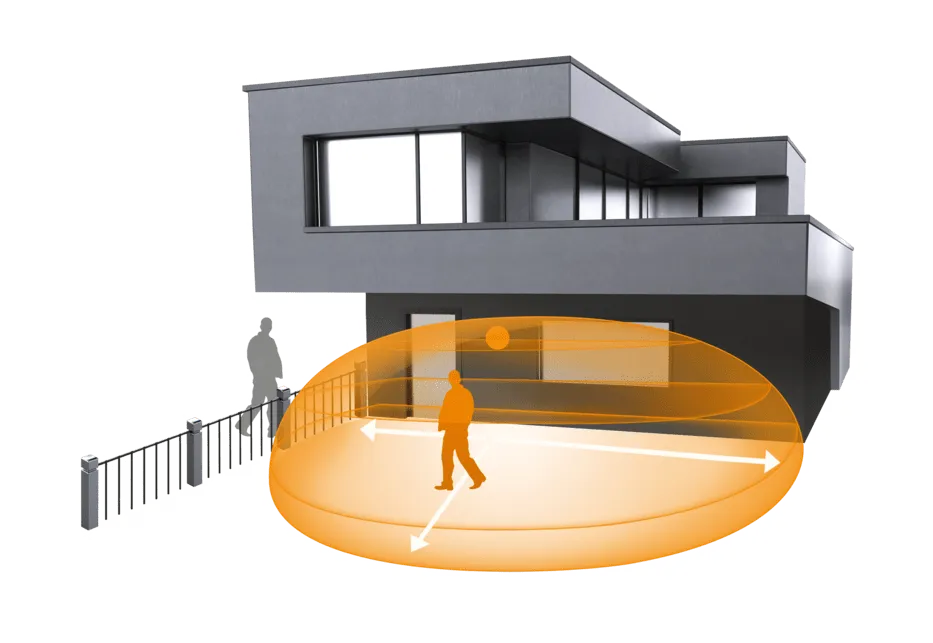 Полный, бескомпромиссный, безупречный. IHF 3D KNX - идеальный детектор движения для улицы. Неважно, на фасадах, навесах, на террасах или на парковках - интеллектуальный высокочастотный датчик включает свет только тогда, когда это действительно необходимо. Во-первых, потому что он может отличать движения человека от движений кустарников, мелких животных и дождя. А во-вторых, потому что пользователь может установить радиус обнаружения максимум 7 метров во всех трех измерениях точно в соответствии со своими индивидуальными потребностями. И в любую погоду.