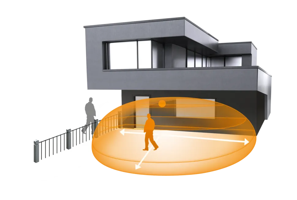 Полный, бескомпромиссный, безупречный. IHF 3D KNX - идеальный детектор движения для улицы. Неважно, на фасадах, навесах, на террасах или на парковках - интеллектуальный высокочастотный датчик включает свет только тогда, когда это действительно необходимо. Во-первых, потому что он может отличать движения человека от движений кустарников, мелких животных и дождя. А во-вторых, потому что пользователь может установить радиус обнаружения максимум 7 метров во всех трех измерениях точно в соответствии со своими индивидуальными потребностями. И в любую погоду.