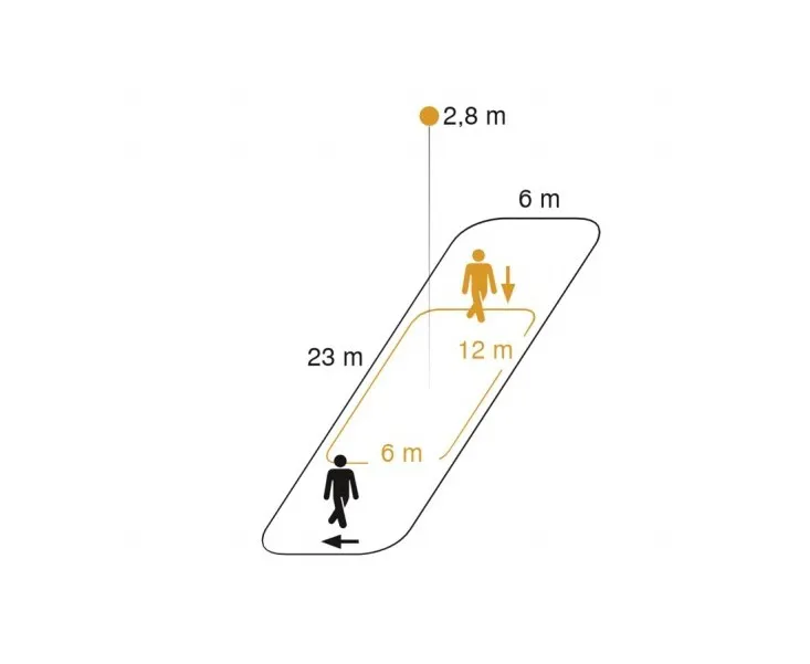 Проходы и длинные коридоры предъявляют особые требования к характеристикам датчиков. Зона обнаружения датчика должна быть узкой, но длинной. Только так минимальное количество датчиков может покрыть участки максимально возможной длины. Испытанный и проверенный снова и снова, IS 345 является специалистом для внутреннего применения этого типа. Он специально разработан для обнаружения в коридорах и имеет угол раскрытия 45 °. Это означает, что он может наблюдать за площадью до 23 х 6 метров по касательной.