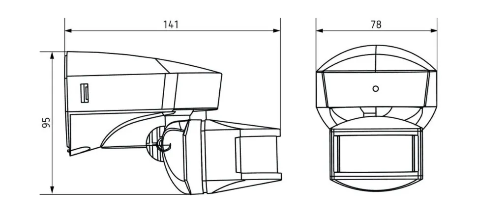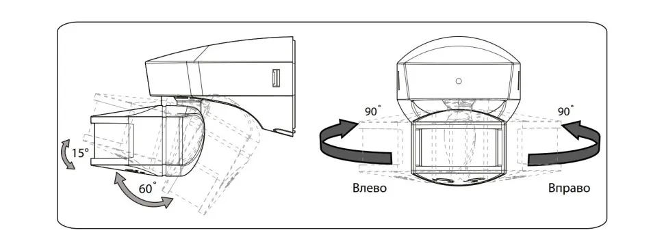 - Сенсорная головка датчика может быть повернута на ± 90° по горизонтали и на 30° вниз