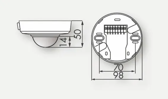 • Дистанционно управляемый потолочный групповой датчик присутствия PD2-M-DALI/DSI в исполнении ведущего устройства, для открытого монтажа, с интерфейсом DALI и круговым диапазоном обнаружения