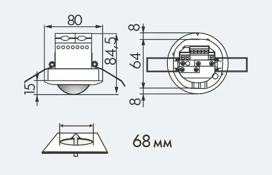 - Датчики присутствия PD2-S, SLAVE устройство с круговым диапазоном обнаружения, для скрытого монтажа в подвесной потолок