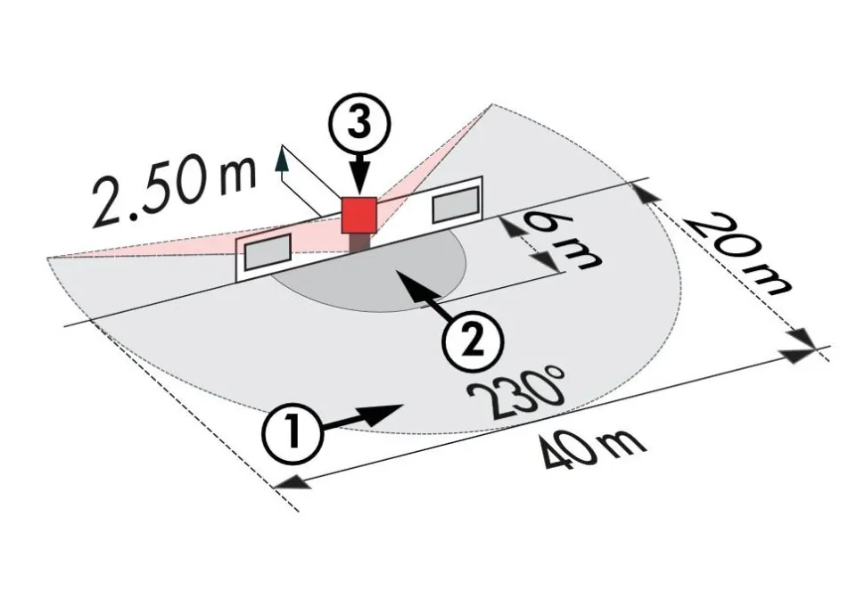- Дальность действия перпендикулярно макс. Ø 20 м