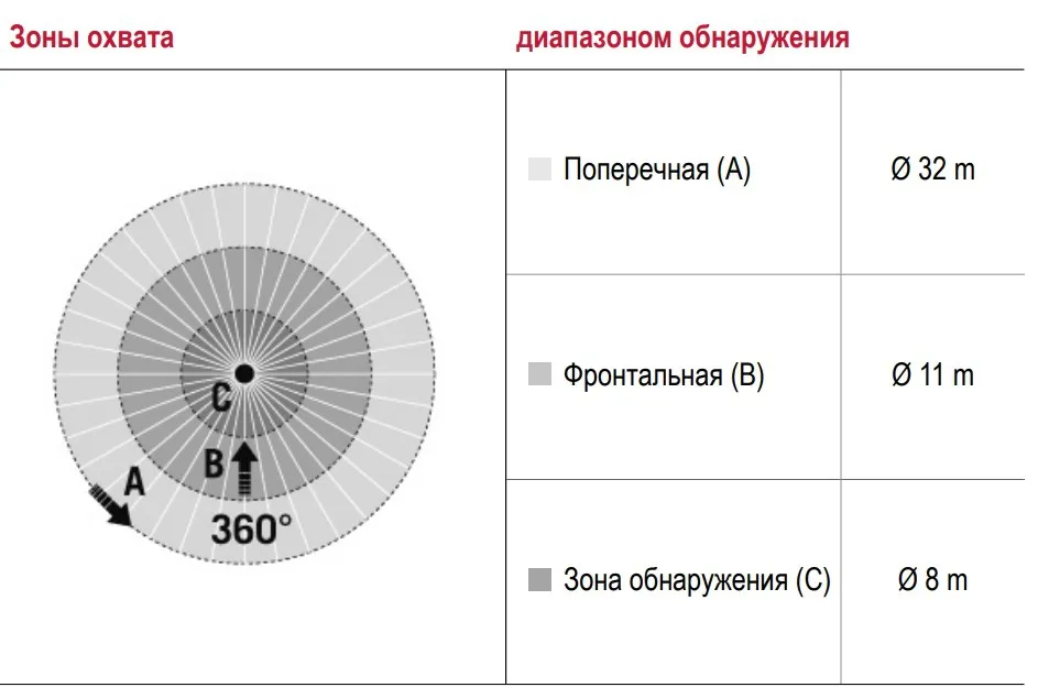 диапазоном обнаружения поперек Ø 32 м