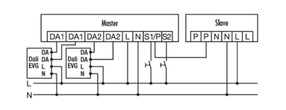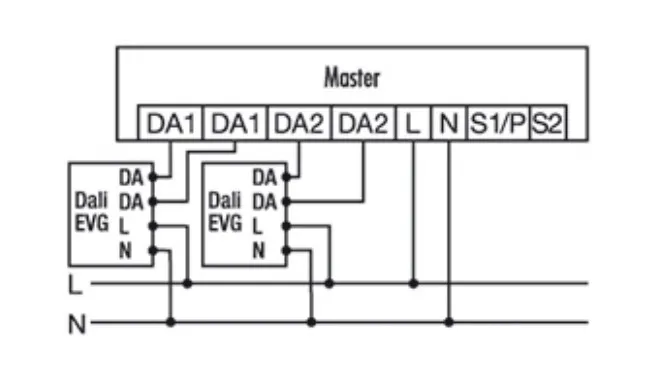 - Автоматическое управление ЭПРА DALI или DSI для поддержания уровня освещенности в зависимости от присутствия людей и интенсивности дневного света (с выходом DALI/DSI)
