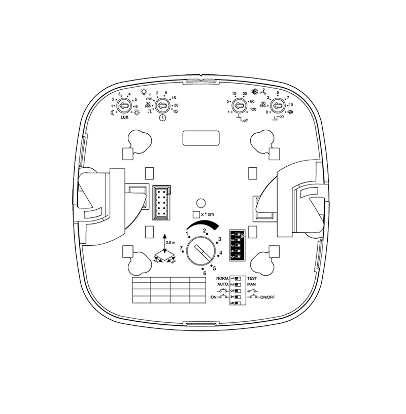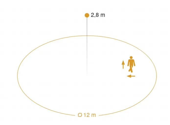 Идеально подходит для санузлов, раздевалок, лестничных клеток, многоэтажных автостоянок, кухонь. Высота установки до 3,5 м, для включения и выключения освещения. Радиус действия - 1 - 12 м. Вылет регулируется с помощью электроники и может быть ограничен в двух направлениях, обнаружение независимо от температуры, технология HF-сенсора также обнаруживает движение сквозь стеклянные, деревянные перегородки.