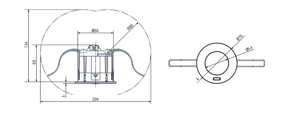 • Площадь зоны обнаружения 360 °, 7 x 7 м (49 м 2 ) при высоте установки 3 м