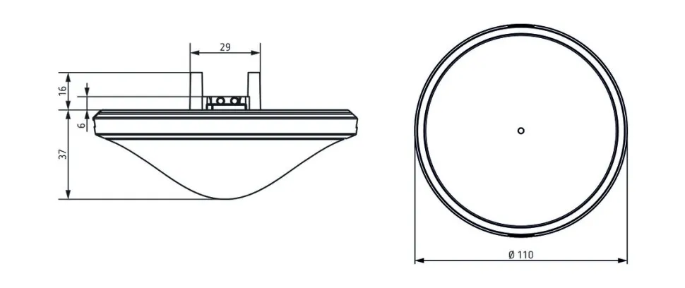 • Пассивный инфракрасный датчик присутствия KNX для скрытого монтажа на потолке