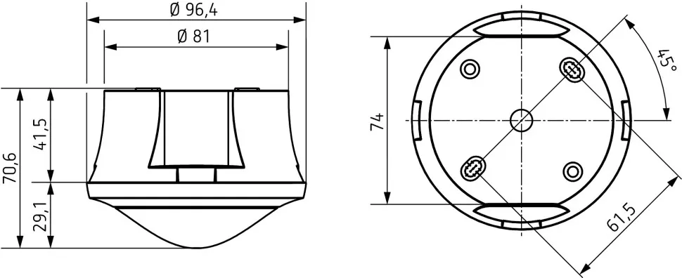 • Круглая зона обнаружения 360°, до Ø 9 m (64 кв.м)