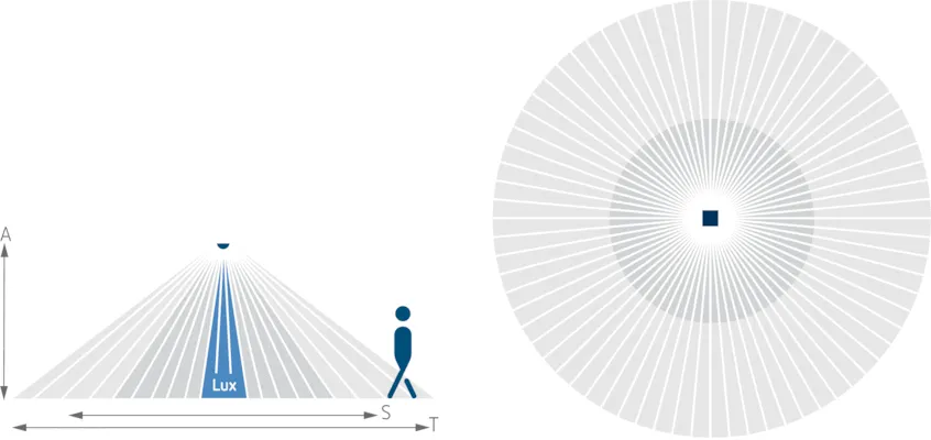 • Круглая зона обнаружения 360°, до Ø 9 m (64 кв.м)