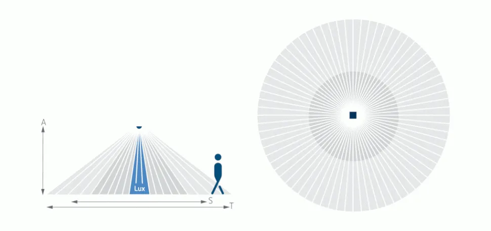 - Круглая зона обнаружения 360°, до Ø 9 m (64 кв.м)