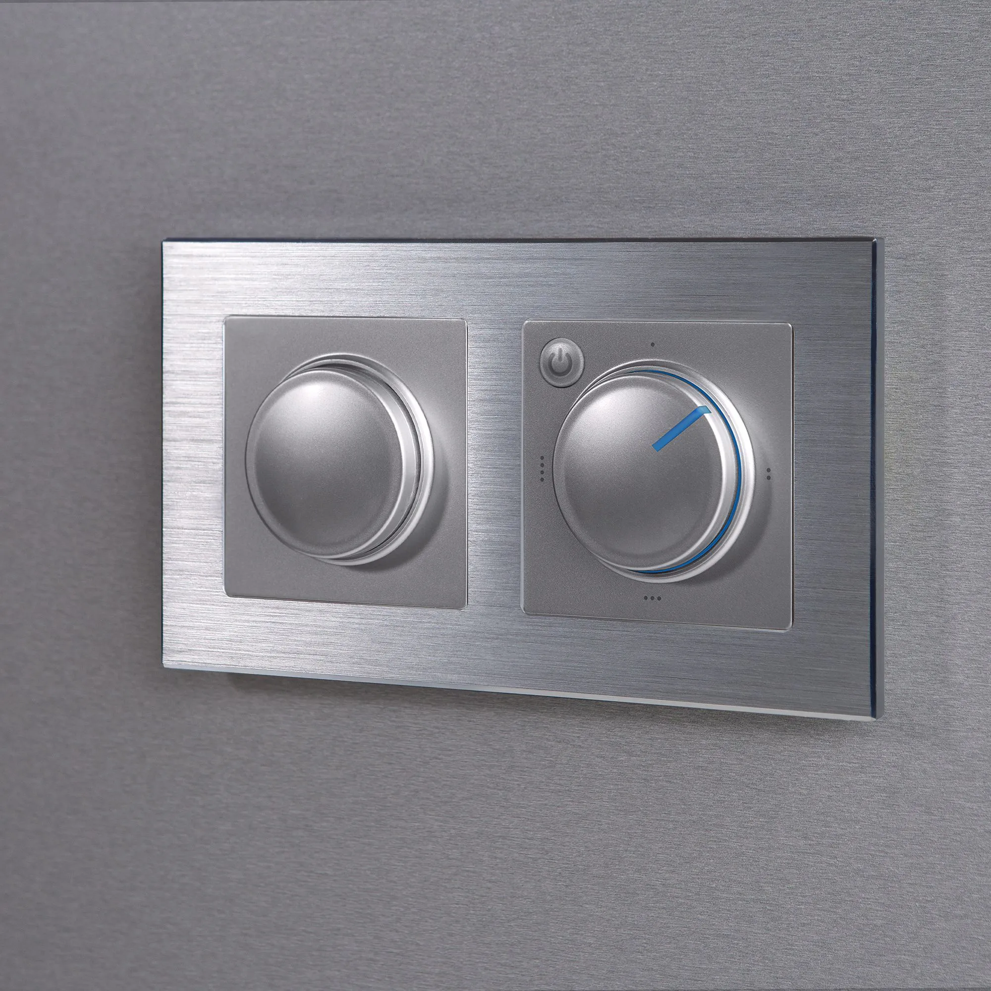 С помощью современного диммера Werkel легко изменять уровень освещенности в помещении. Включение и выключение производится нажатием на кнопку. Изменение режима яркости и интенсивности светового потока регулируется поворотной кнопкой. Диммер совместим со светодиодными диммируемыми, галогенными лампами и лампами накаливания. Диммер можно использовать в тандеме с проходным выключателем. Для надежной и бесперебойной работы диммера рекомендуется оставлять запас мощности ~15% (510 Вт), при максимальной мощности 600 Вт, для диммируемых светодиодных ламп ~15% (170 Вт), при максимальной мощности 200 Вт.