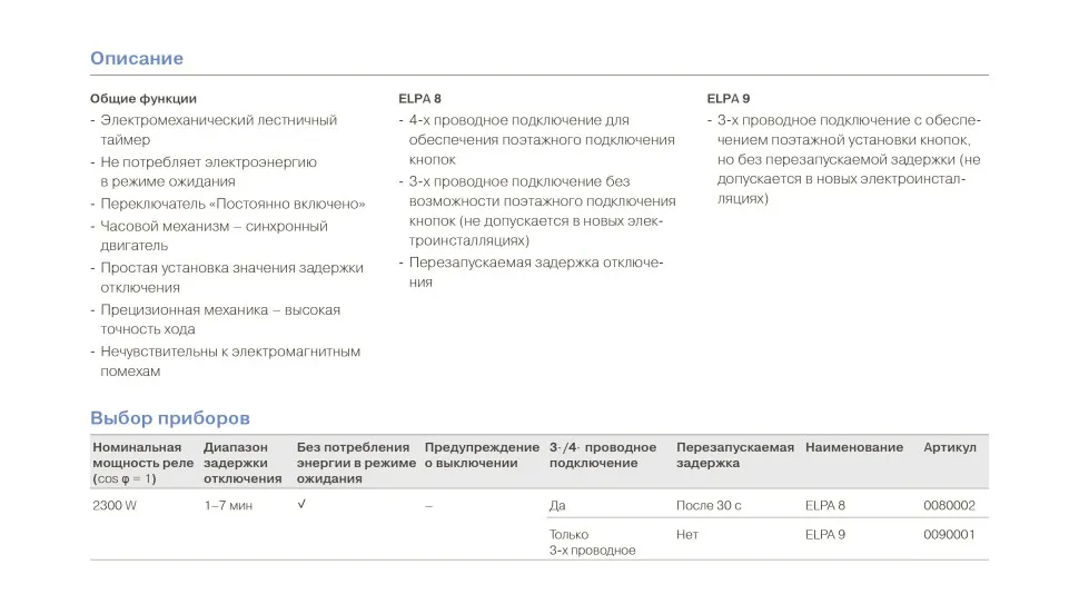 • Не потребляет электроэнергию в режиме ожидания