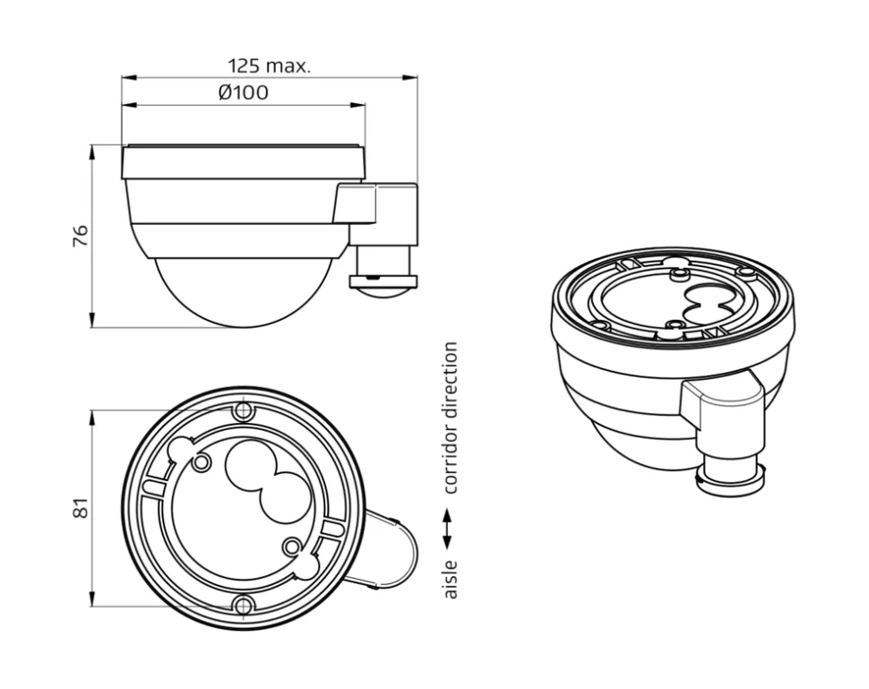 • Мультисенсор DALI-2 (устройство ввода) для поверхностного монтажа на большой высоте монтажа