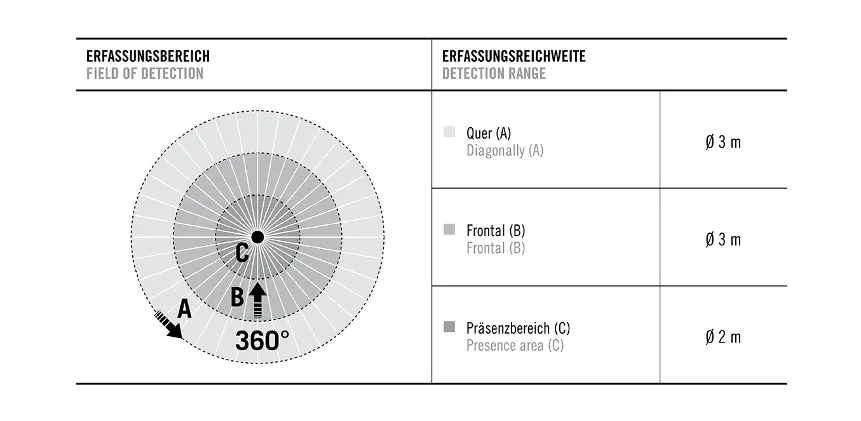 | Угол охвата, диапазон обнаружения | Ø 2 m |