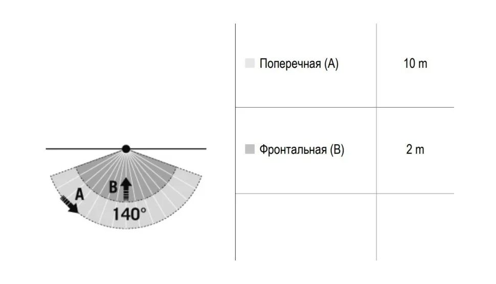 • Диапазон обнаружения 140°, дальность действия до 10 м при монтажной высоте 1,8 м