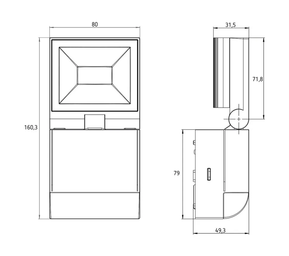 - Прожектор может быть повёрнут на ± 40° в горизонтальной плоскости; на 70° вниз; развёрнут на 180° - для освещения стены.