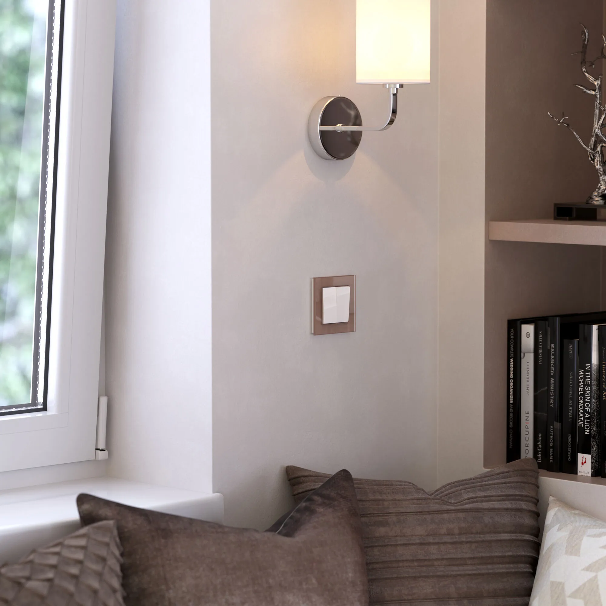 Рамка Favorit выполнена из закаленного стекла толщиной 5 мм. Идеально отшлифованные грани, подчеркнутые прямой фаской, создают необычайную игру света и придают дополнительный объем стеклу.