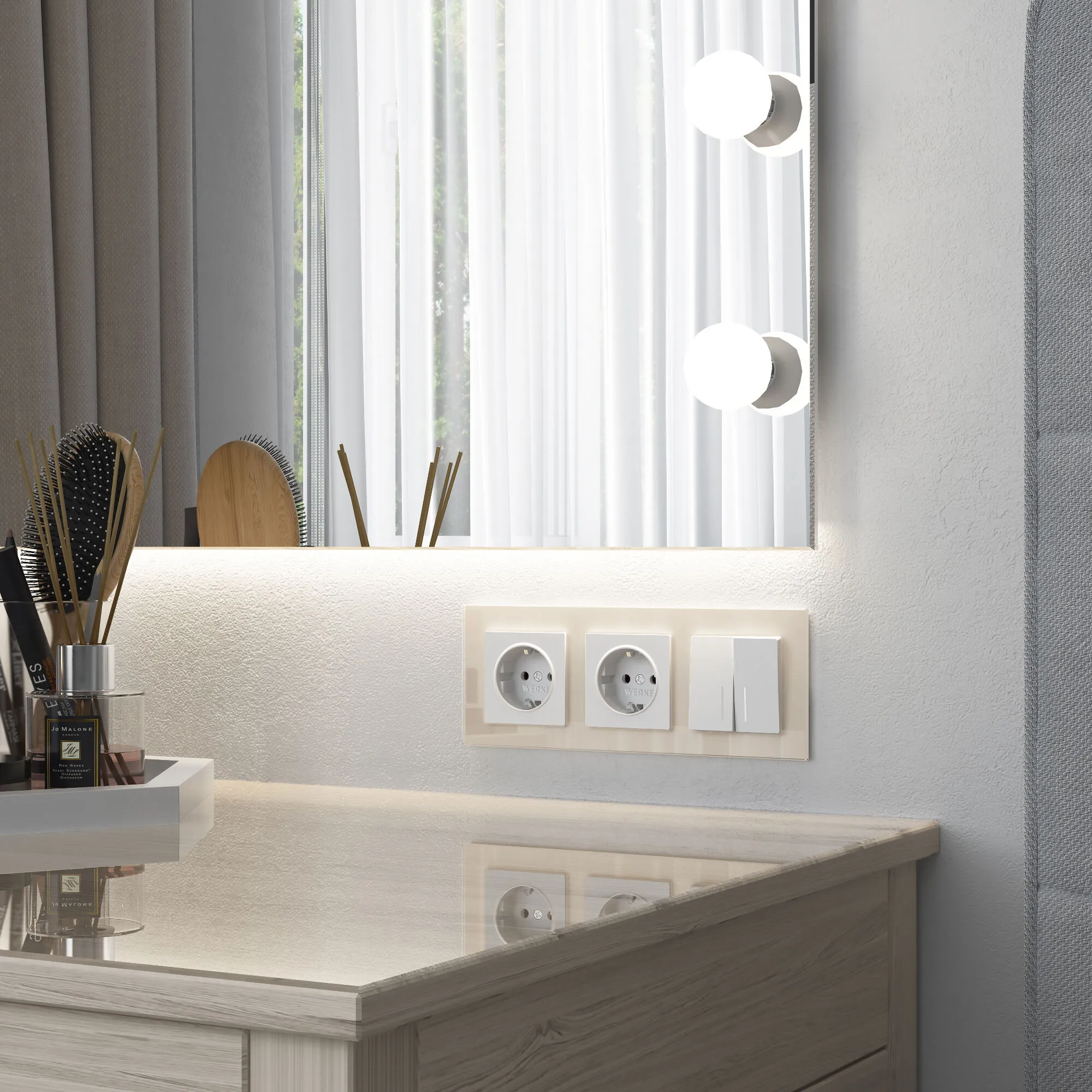 Рамка Favorit выполнена из закаленного стекла толщиной 5 мм. Идеально отшлифованные грани, подчеркнутые прямой фаской, создают необычайную игру света и придают дополнительный объем стеклу.