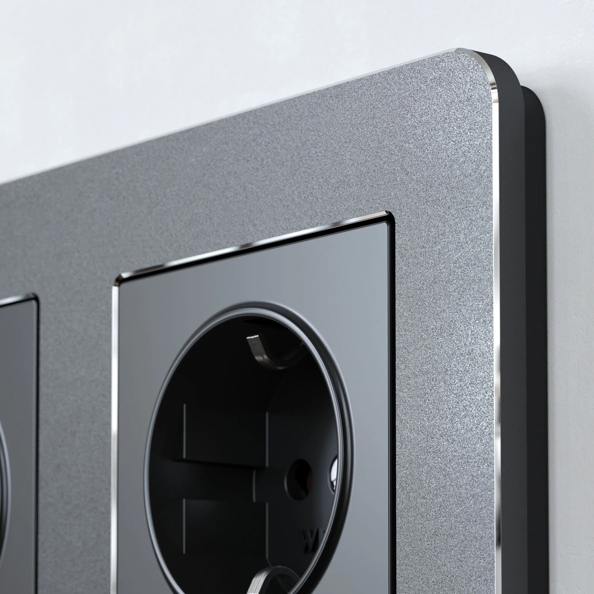 Platinum — коллекция рамок из литого анодированного алюминия. Сатиновая поверхность с шероховатой фактурой и изящные акцентные фаски на гранях создают премиальный дизайн, который подчеркивается благодаря увеличенным размерам рамки — 95×95 мм.