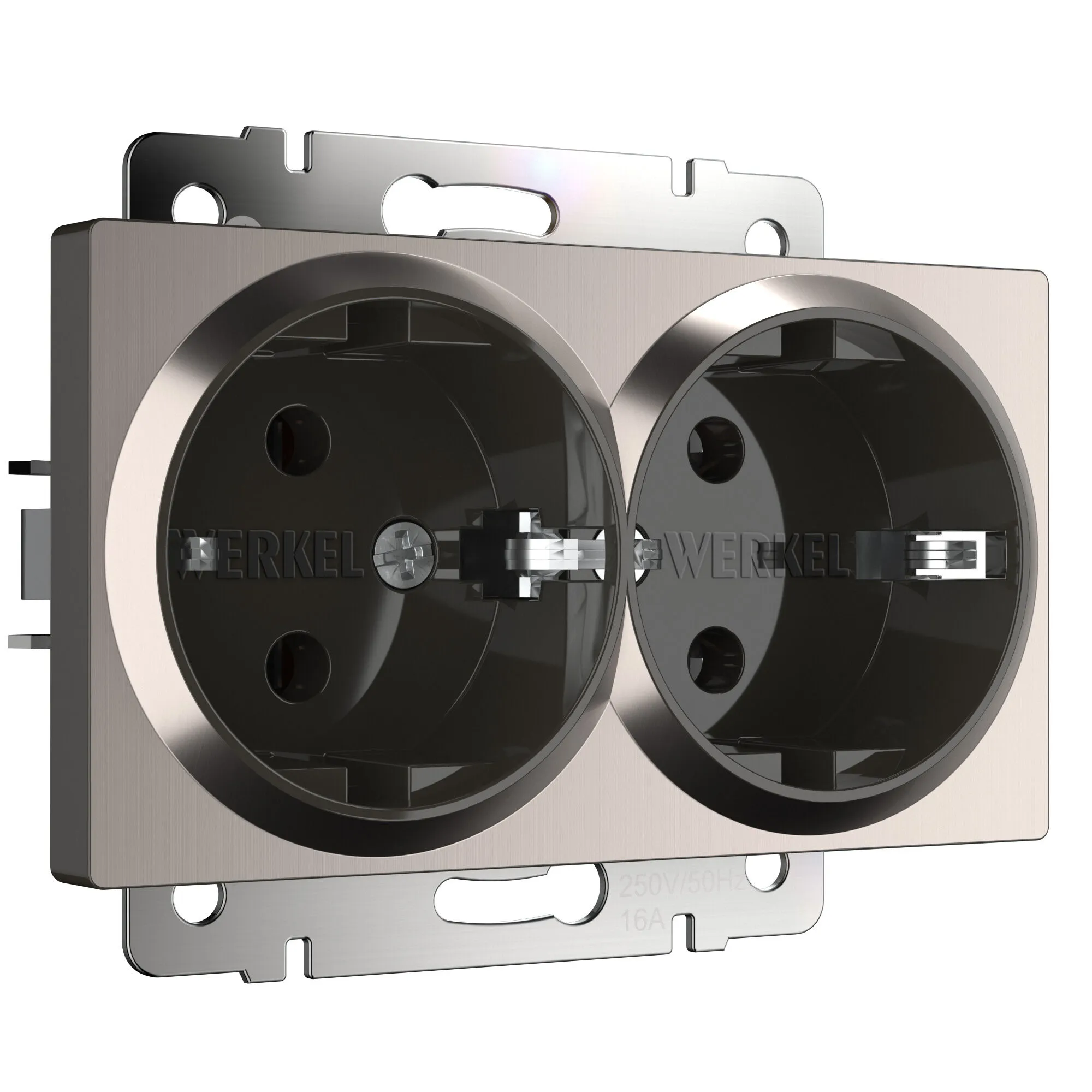 Розетка двойная с заземлением (глянцевый никель) W1172002
